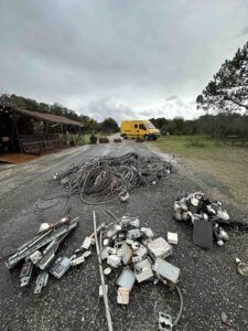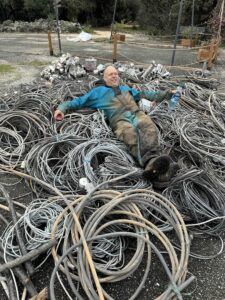 Quand nous sommes arriver en 2017, durant quatre mois nous avons dû vider la grotte d’environ 600 kilos de déchets en tous genres. Il y’avait dans les années 70 / 80 un zoo cavernicoles et lorsque son exploitation cessé, tout le matériel est resté en place à se détériorer. Dans les grottes les dégâts ne se voient pas toujours, cachés par l’obscurité naturelle. L’hiver dernier, nous avons enfin réussi à faire entendre la sagesse à la mairie et après avoir évacuer près de 2 tonnes de câbles, la grotte semble maintenant plus sereine et apaisée, c’est comme lorsqu’une coupure de courant se produit dans une maison, tout devient très calme (une fois que Robert a fini d’hurler parce que la télé s’est coupée en plein match de foot ! Ou que sa femme à une extinction de voix).